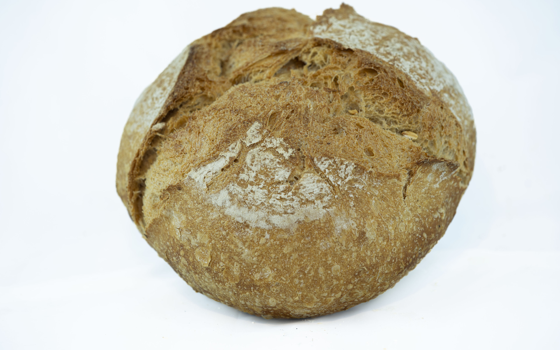 Pa semiintegral fermentat només amb massa mare, amb poca acidesa i sabor que recorda a llegums, té molt poc contingut de gluten i alt contingut de fibra cosa que el fa molt més digerible. Fet amb Blat monococcum, que é la primera varietat de blat domesticada per l'ésser humà fa més de 10.000 anys i que donaria origen als blats moderns.